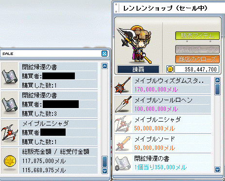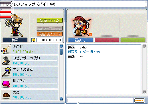 SDTをフルに狩って早速露店出そうとしてると・・・なんか視線を感じる・・・・